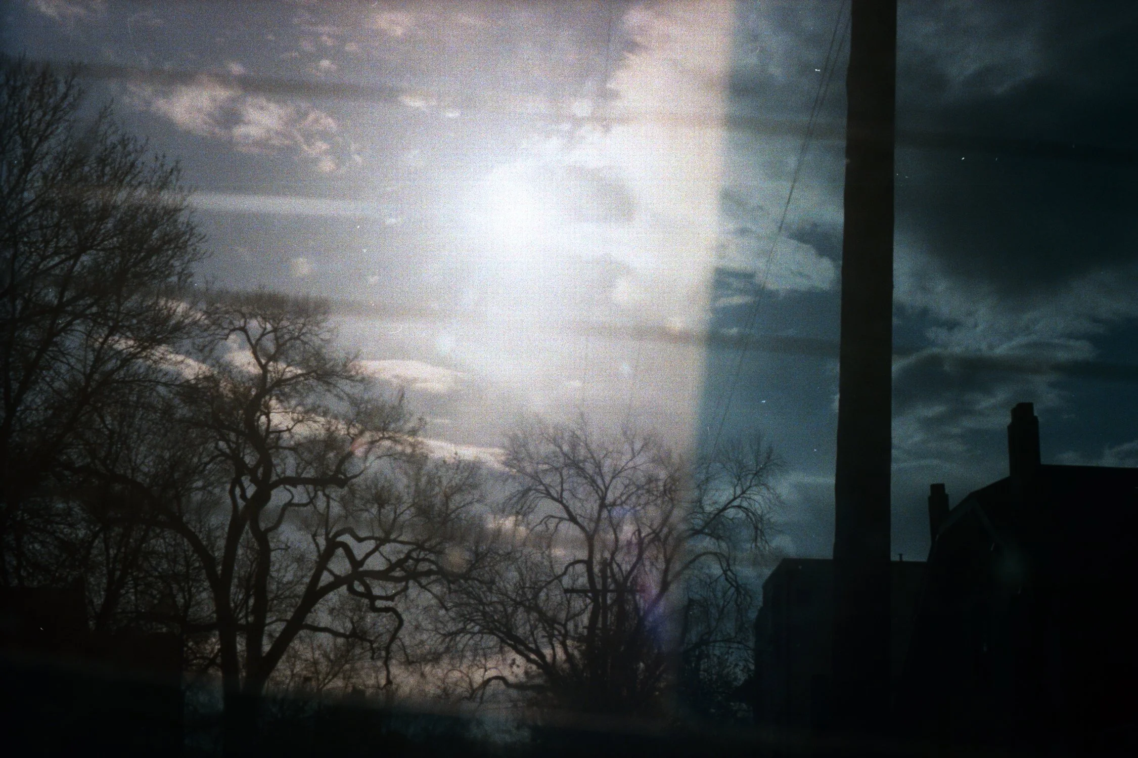 These images were taken in spaces of deep personal significance which, through loss and dislocation, are no longer places I can inhabit. I traveled through these landscapes on foot and shot them with expired film, the physical and visual effects of which cannot be anticipated. The artifacts these contemplative walks have yielded are meditations not just on the landscapes they represent, but on the psychological act of remembering, and retracing.